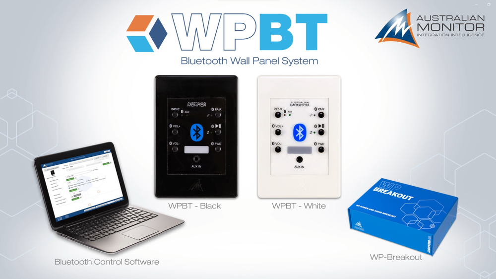 Australian Monitor is pleased to announce the release of the WPBT Bluetooth Wall Panel System, a commercial grade Bluetooth wall panel and optional accessory breakout box.