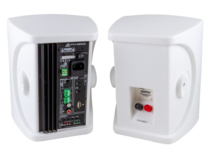 The Australian Monitor AMPAV40 is a self powered three-way stereo speaker system consisting of one powered and one passive speaker. The speakers are compact, architecturally pleasing and come supplied with adjustable mounting brackets.
