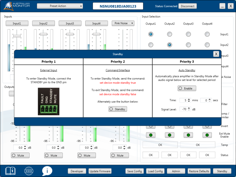All amplifier channels offer 100V, 70V and 4Ω output options so you can choose the output configuration to match your application.PC Control ApplicationTake control of your amplifier using the HSP Control Software.
