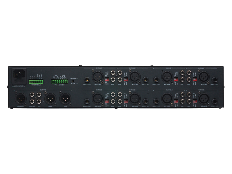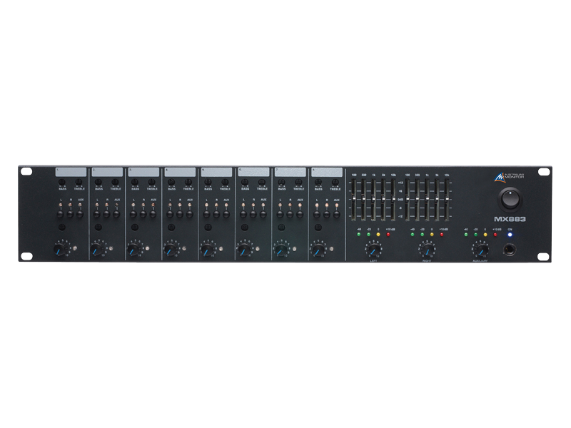 Link two MX883's to create a 4RU stereo mixer that features 16 stereo or XLR balanced inputs.