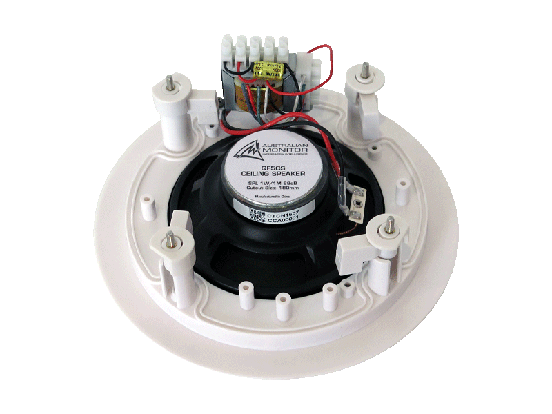 The QuickFit dual cone series QF5CS, QF6CS, QF6WRC, QF8CS and QF8CSB provide cost effective solutions for a myriad of commercial audio applications such as education, shopping centres, common areas, RSLs, clubs, restaurants, fire evacuation systems and many more applications that requires a reliable high quality affordable commercial ceiling speaker product. Each model also features a supervisory capacitor as standard to allow for evacuation system integration.