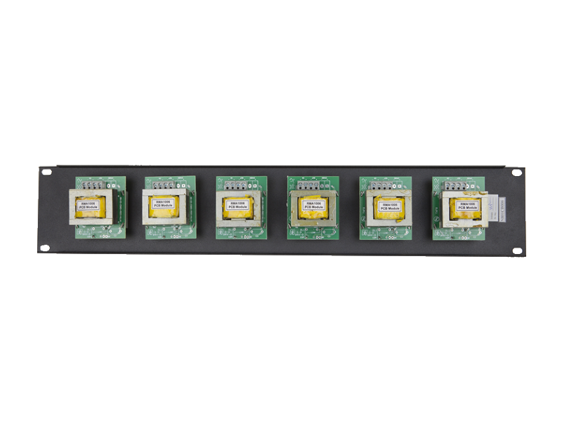 100 Volt line, 6 x 100 watt attenuator mounted on a 2RU Rack Panel.