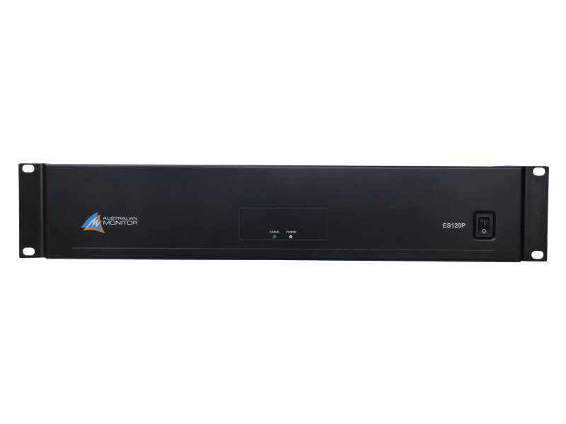 The ES120P power amplifier delivers 120 watts at 100 volt or 4 ohm in a 2 RU package.