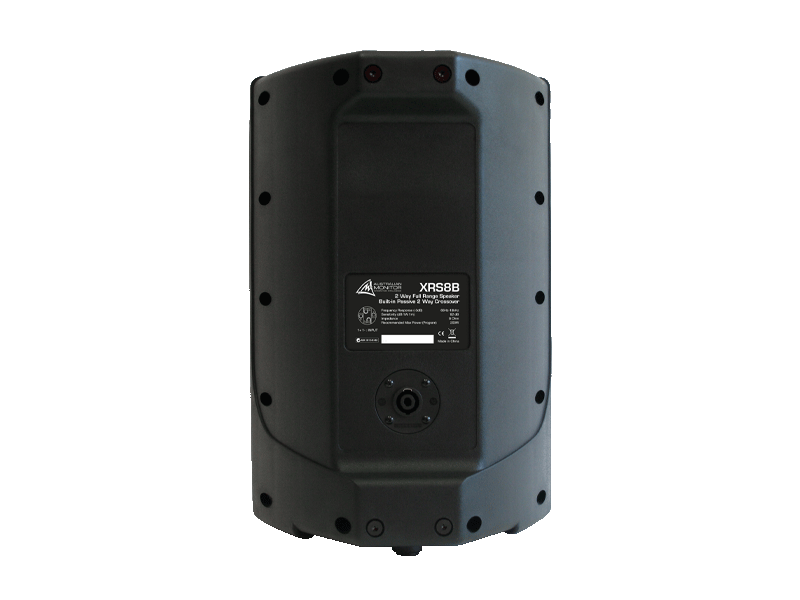 Building on the reliability and sonic quality of the very popular XR speaker series, the XRS8 8” woofer and 1,5” compression driver two-way injection moulded speaker enclosure has more features and new aesthetic to suit live sound reinforcement and permanent installation. From front-of-house to fold back, from the dance floor to background fill, the XRS8 is designed with flexibility and performance in mind. The XRS8 is supplied with foldback kit and U bracket.