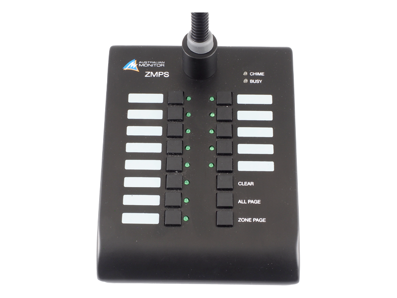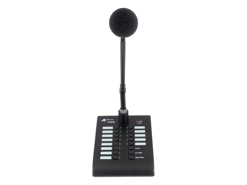 The ZMPS paging station is a programmable paging front end for the ZONEMIX system. Featuring a slimline gooseneck paging microphone and the ability to page any single zone, combination of zones or All Call.