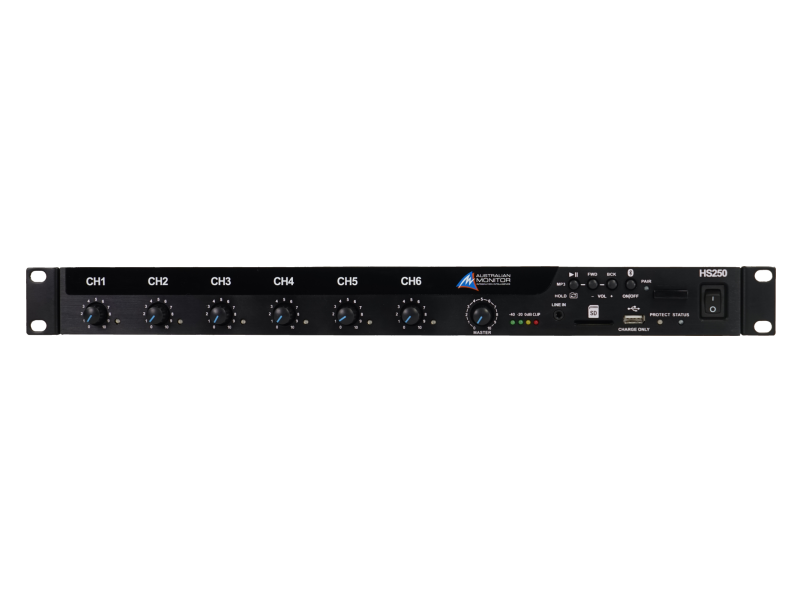 The HS series is Australian Monitor’s next generation of Class D mixer amplifiers, delivering high quality audio reinforcement with the power you need – 60, 120 and 250 watt options, all in a one rack unit package.