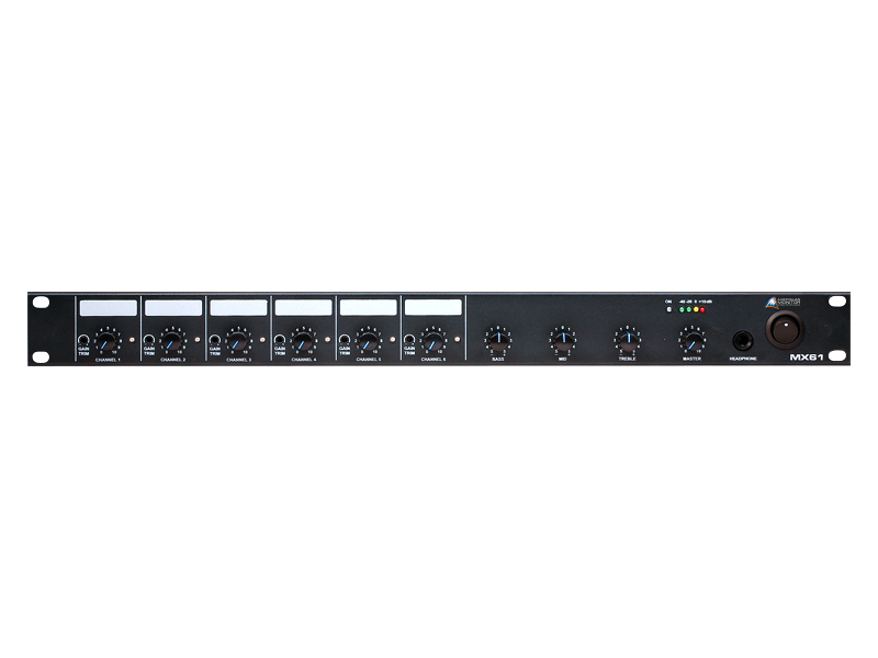 The MX61 is a 1RU mono mixer that features six universal microphone/line inputs to one mono output.