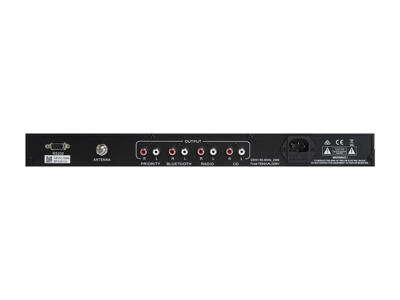 In addition, there is a USB and SD card input which supports MP2, MP3, WAV, WMA formats playback. The product contains a discrete stereo output for the CD, Radio and Bluetooth as well as a priority output.