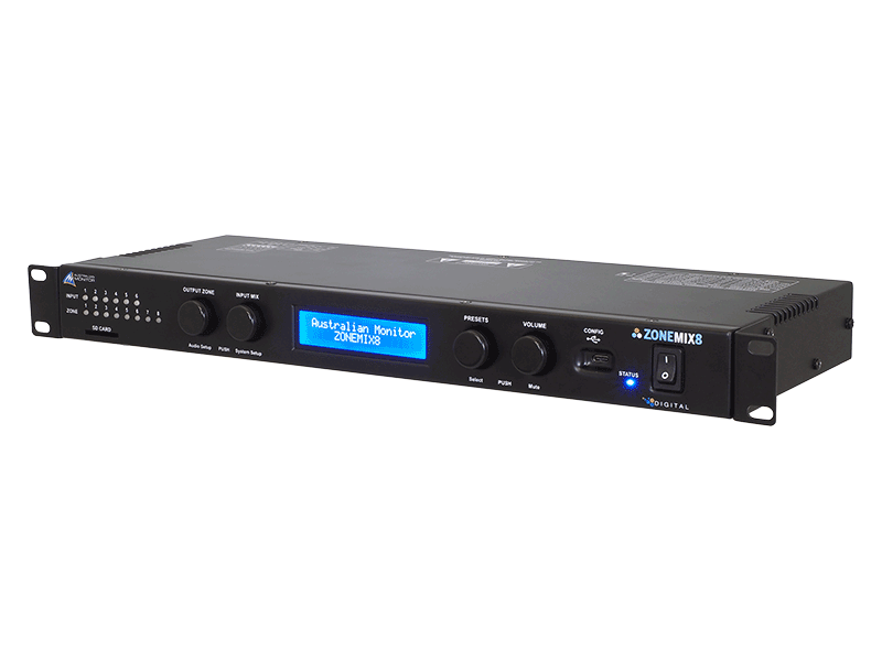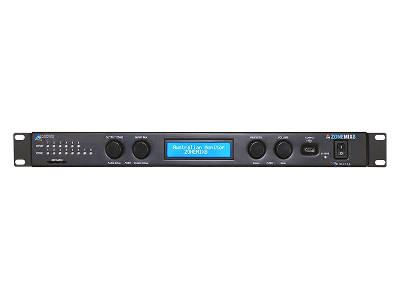 The ZONEMIX8 provides a 8 zone mixing and paging solution featuring USB, Ethernet and RS232 connectivity.