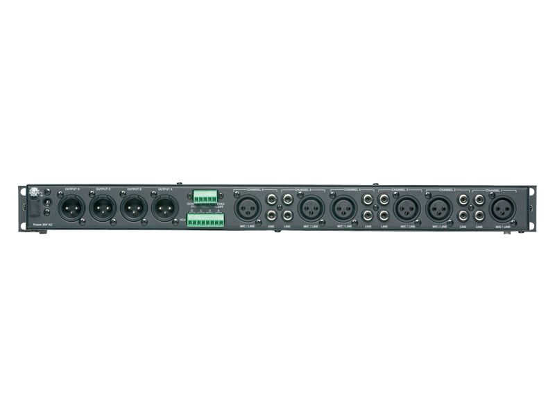 Featuring 6 inputs that can be balanced XLR mic or dual RCA/balanced XLR line level, all available to any combination of 4 zone outputs, the ZRM4 makes signal routing in multizone applications easy.